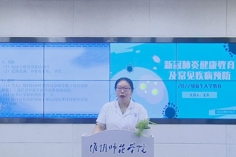 在疫情健康教育和艾滋病防治基本知识的专题讲座中,校医务科医师王芬结合目前的疫情形势,从新冠病毒的基本特征、传播途径、症状出发,详细讲解了如何做好个人防护。同时,她简单介绍了艾滋病的特点、表现、传播途径等方面知识。她希望全体新生养成良好的生活习惯,懂得爱惜自己,珍惜生命。