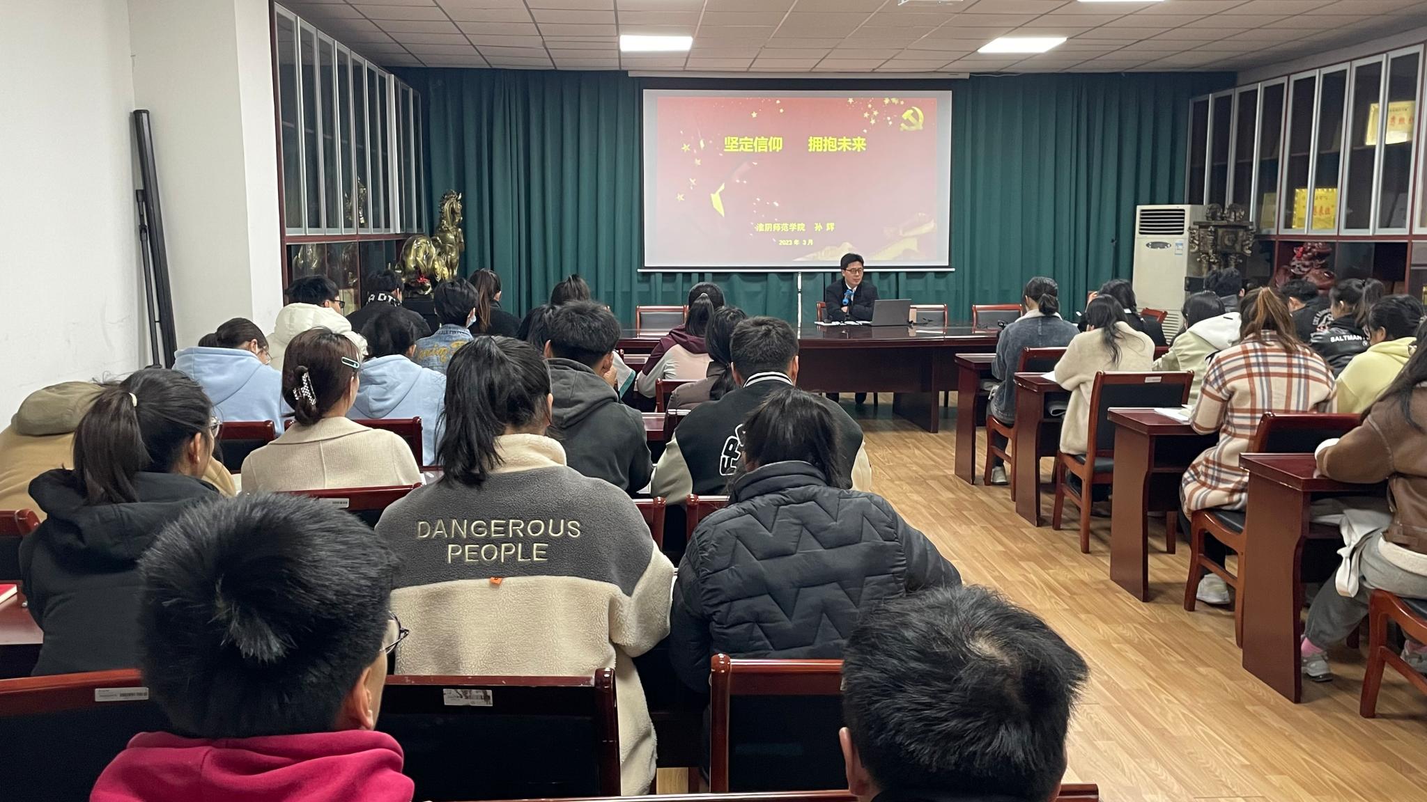 校纪委委员、文学院党委书记孙辉以“坚定信仰 拥抱未来”为题为全体党员上党课。他从什么是信仰、如何坚定信仰以及对党员同志的希望三个方面和学生党员进行了深入的交流,他希望全体党员同志要时刻牢记党员身份,严以修身,加强党性修养,树立信仰三大步骤“学习-思考-实践”,坚定理想信念,听党话,跟党走。