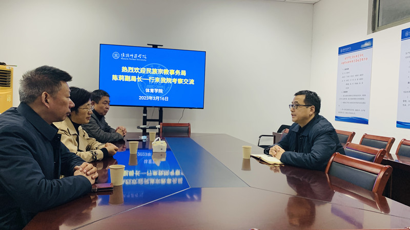 3月18日,淮安市民族宗教事务局陈莉副局长,民族处崔振友处长和陈新奇处长一行受邀来我院调研考察交流,开云手机登录入口院长蔺新茂教授、教师教练员代表张清江副教授在开云手机登录入口会议室和来宾并进行了座谈。