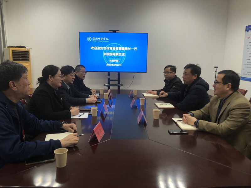 3月23日,淮安市体育局局长祁德霞、南通铁人运动用品有限公司董事长黄承斌以及南通市体育产业协会秘书长常生一行受邀来我院考察调研。开云手机登录入口党委书记陆林召、院长蔺新茂、党委副书记丁光明在开云手机登录入口会议室与来宾进行了座谈、交流。