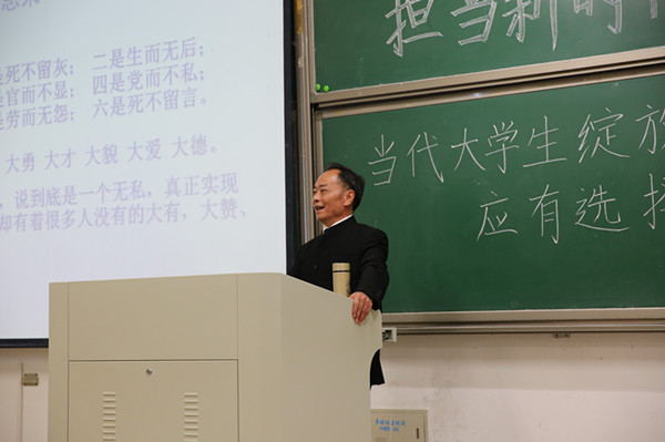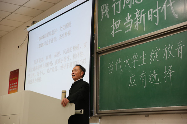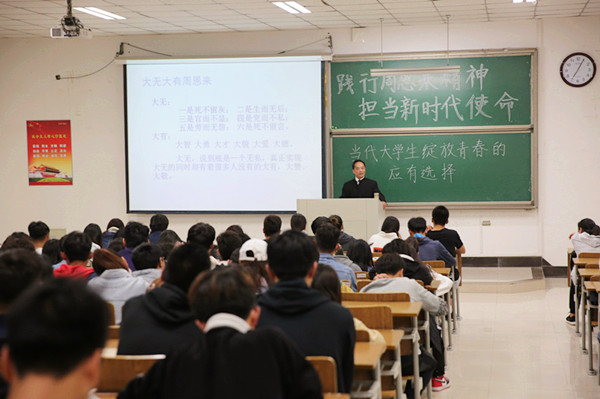 最后徐老师告诫同学们:我们生活在一个伟大的时代,生活在这个时代就当肩负起时代使命,否则势必有愧于时代。祝愿同学们,在思考中形成自觉,认清使命,在践行精神中担当使命,创造与时代交相辉映的亮丽人生。