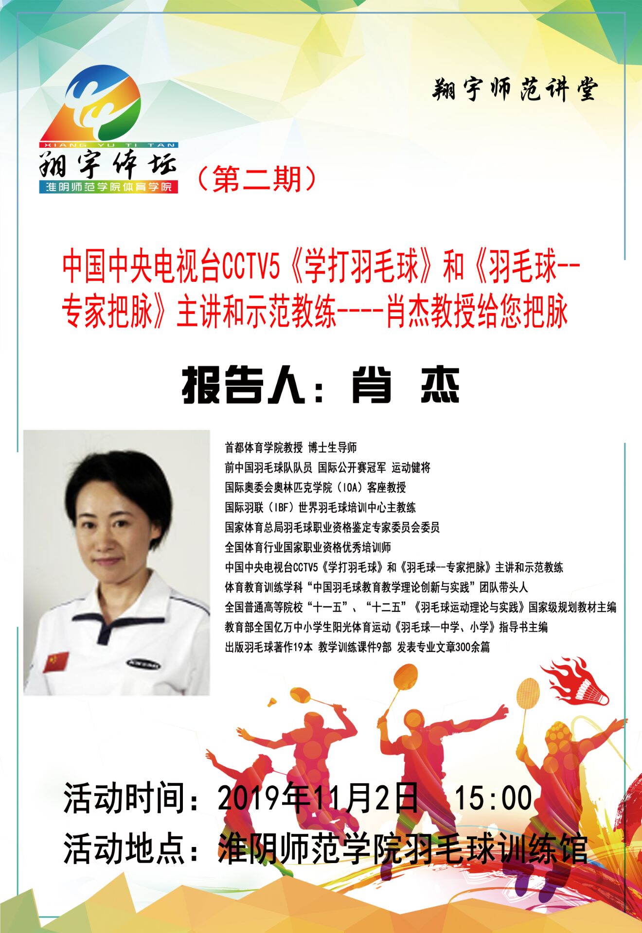 体院新闻网11月2日电(记者 沈璐)11月2日下午3点,在淮阴师范学院羽毛球训练馆举行了“中共中央电视台CCTV5《学打羽毛球》和《羽毛球专家把脉》主讲和师范教练——肖杰教授给您把脉”活动。这是开云手机登录入口“翔宇体坛”和翔宇师范讲堂的第二期活动,参加此次活动的有淮阴师范学院、淮阴工学院部分羽毛球专项教师及两校羽毛球校队学生和开云手机登录入口部分师范生。体院副院长周卫东主持了本次活动,并对肖杰教授的到来表示热烈欢迎和衷心感谢。